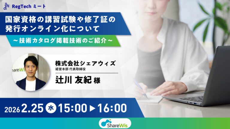【デジタル庁主催】「国家資格の講習試験や修了証の発行オンライン化について〜技術カタログ掲載技術のご紹介〜」に弊社代表 辻川が登壇します