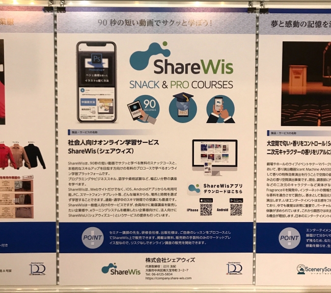 当社が運営するオンライン学習プラットフォーム「ShareWis」の展示パネルが、大阪起業家ミュージアム(大阪市中央区本町1-4-5 大阪産業創造館B1F)で、2020年2月12日まで展示されております。