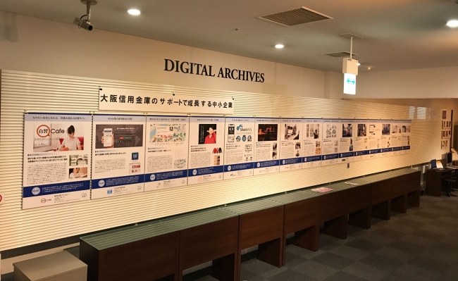 本パネル展示は大阪信用金庫の特別展の一環として行われており、だいしん創業支援ファンド等を利用した企業のパネルが展示されています。