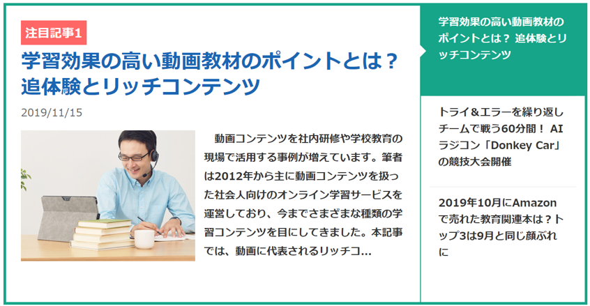 教育ICT(EdTech、エドテック)の専門メディア EdTechZine (エドテックジン)に、 弊社代表辻川の寄稿記事**「学習効果の高い動画教材のポイントとは?追体験とリッチコンテンツ」**を掲載いただきました。