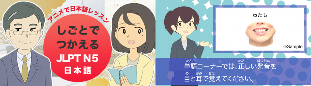 日本語能力検定試験(JLPT)N5レベルの日本語を、アニメのキャラクターと一緒に学べる動画講座です。仕事の現場で使える日本語を学びたい、日本語初学者の外国人の方を対象にしています。