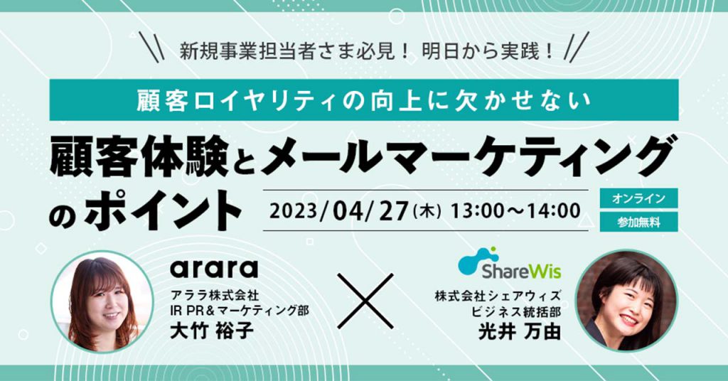 4月27日(木)13時よりアララ株式会社との共催セミナー「顧客ロイヤリティの向上に欠かせない『顧客体験』と『メールマーケティング』 のポイント」を開催します。